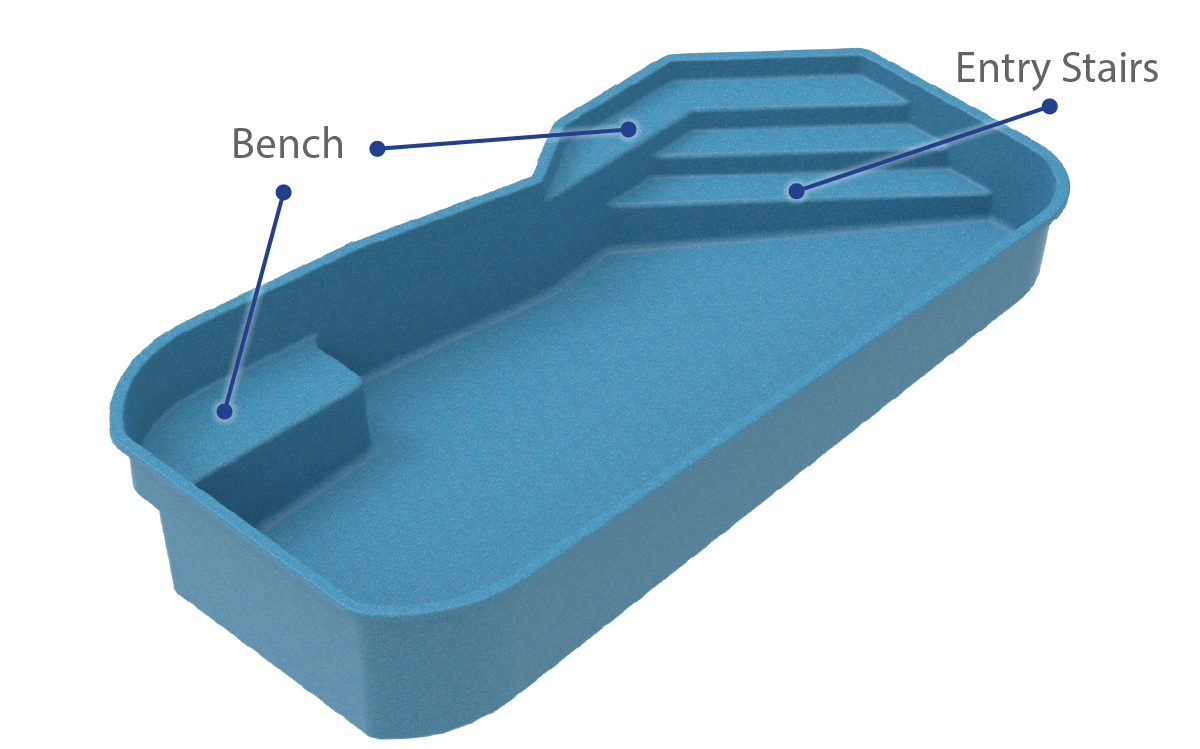 Renderings are for illustrative purposes only and are not intended to serve as exact/scaled representations of the actual product. All measurements are from widest outside edges of pool shell and may vary by up to 3%.